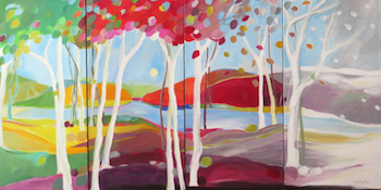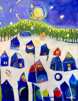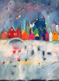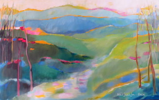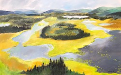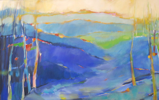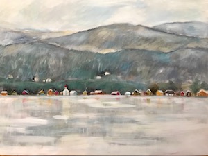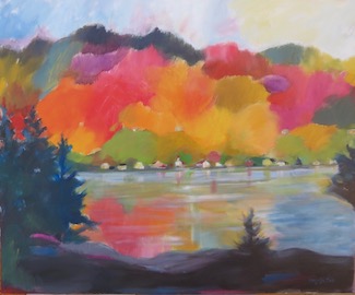 "Reminds me of the Gatineau River near Wakefield. Altogether a masterpiece. I remember the evenings looking out from the MOLO terrace over the water. An emotional painting"