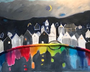 a rainbow running through the grey town makes happy reflections 10 x 12 |